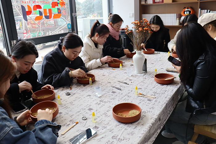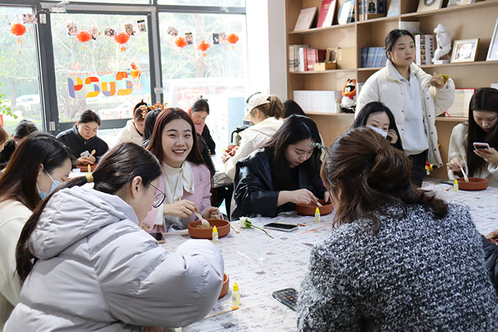 活動(dòng)現(xiàn)場(chǎng),專業(yè)老師給大家講解手工藝術(shù)品的制作方法。大家興致勃勃、迫不及待地拿起制作工具,準(zhǔn)備在各自的藝術(shù)品一展身手。現(xiàn)場(chǎng)陣陣的歡聲笑語,氣氛十分溫馨,大家看著自己的勞動(dòng)成果,成就感油然而生。